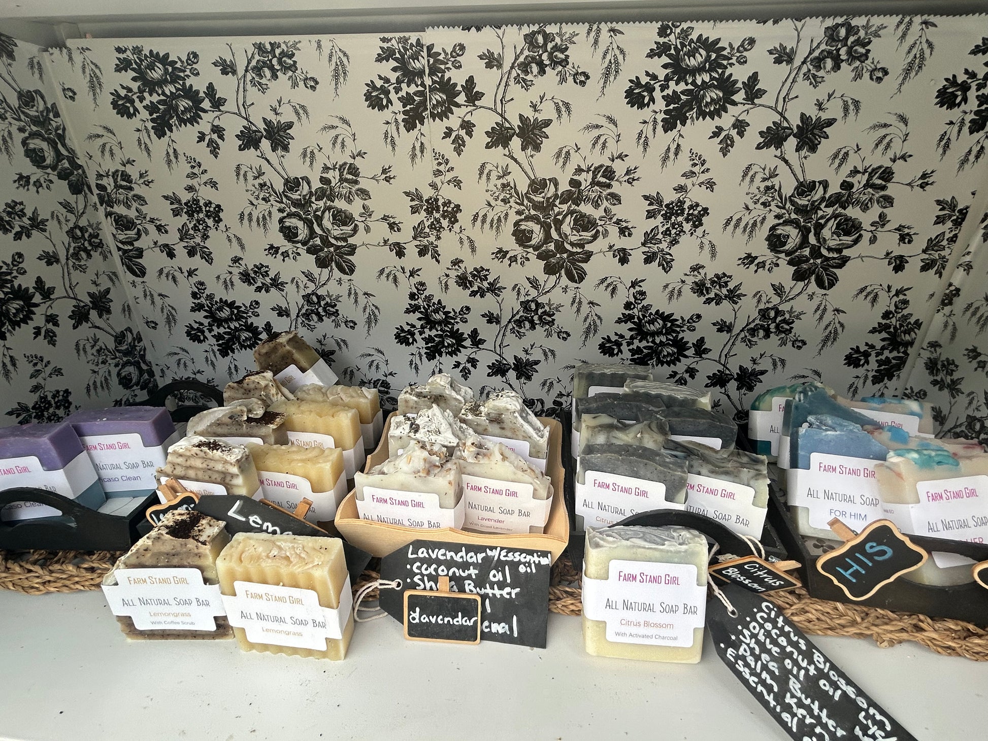 Coconut oil, olive oil, Shea, butter and palm, kernel with narcissist fragrance oil hence of orange essential oil and Cedarwood essential oil. Less ingredients with more cleaning power.