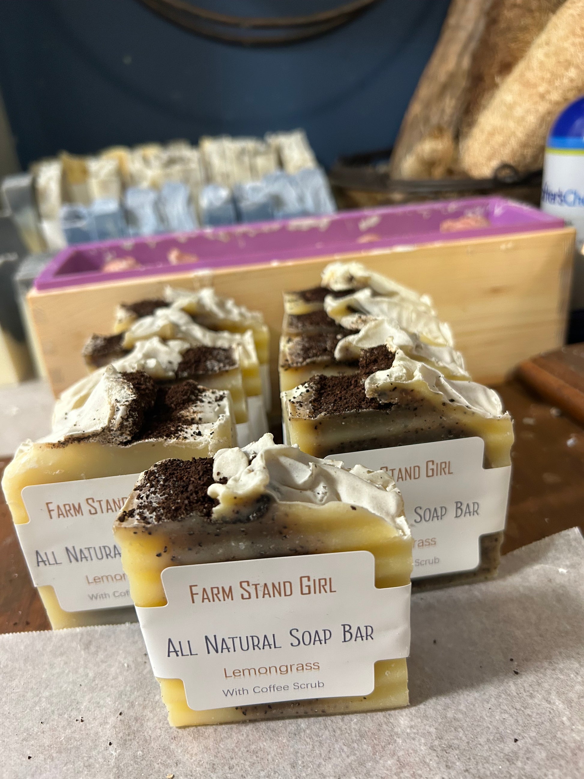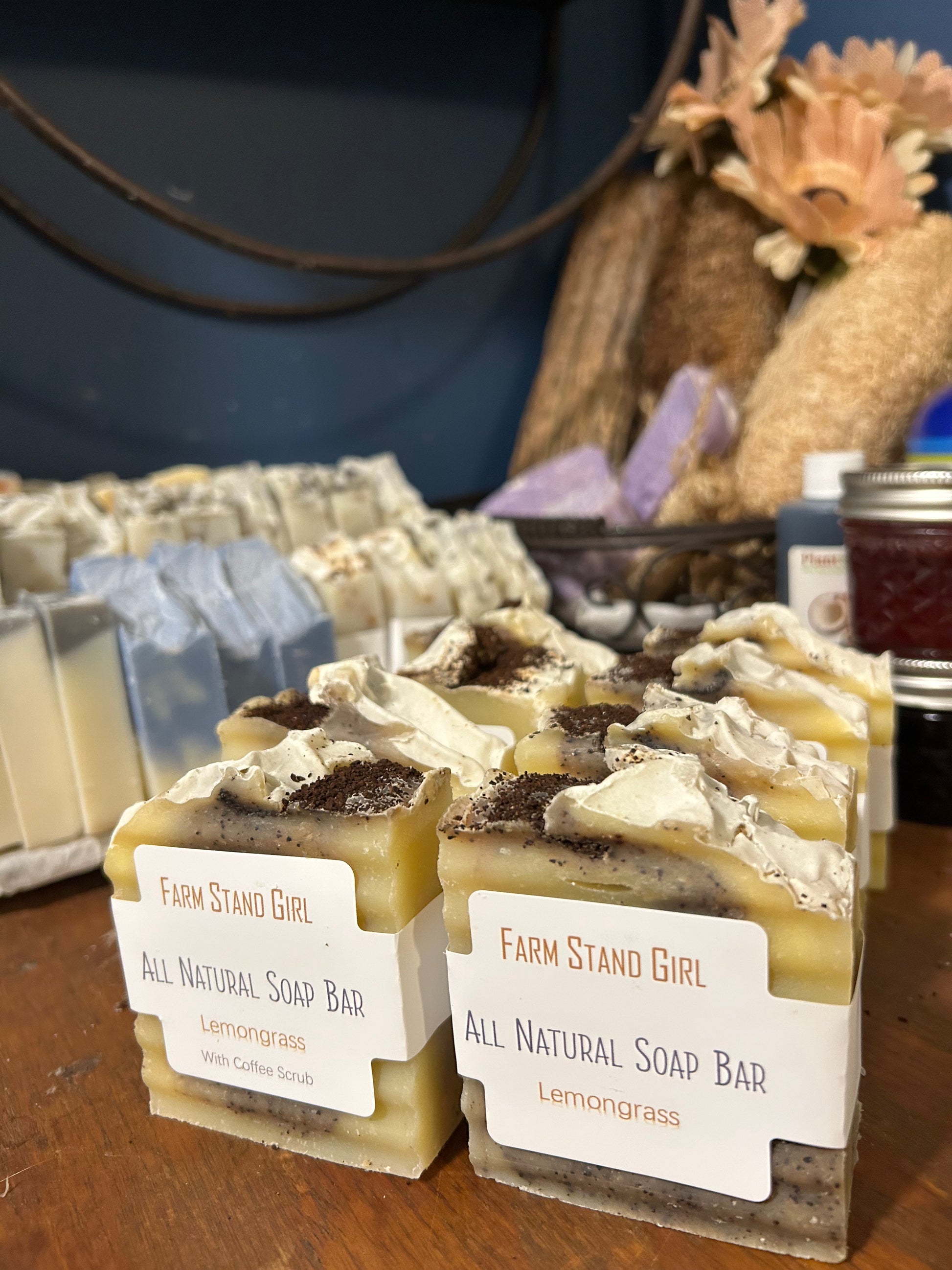 | The Lemongrass All natural Soap by Farm Stand Girl is a simple and effective solution for sensitive skin. Made with coconut oil and olive oil, this rectangular bar of soap is perfect for daily use on the body. The refreshing lemongrass essential oils adds a natural touch to your hygiene routine, while being made in North Florida by Farm Stand Girl in the United States. Ideal for women, teens, and men, this all-natural deodorant soap is a great addition to your skincare regimen. Helps remove odors while also moisturizing and help reducing pore sizes! Antibacterial and anti microbial properties! Helps relieve eczema and HS symptoms and has less ingredients than anything out there! Vegan formula- animal free lemongrass with coffee scrubs with even more benefits from the coffee! 3+ oz bar |